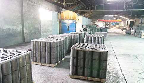 上水口: 配料—混煉—過篩—成型—自然晾干—380℃烘干—浸漬瀝青—清除表面瀝青—磨制—80℃烘干—抹面—晾干—包裝—打托盤—發貨